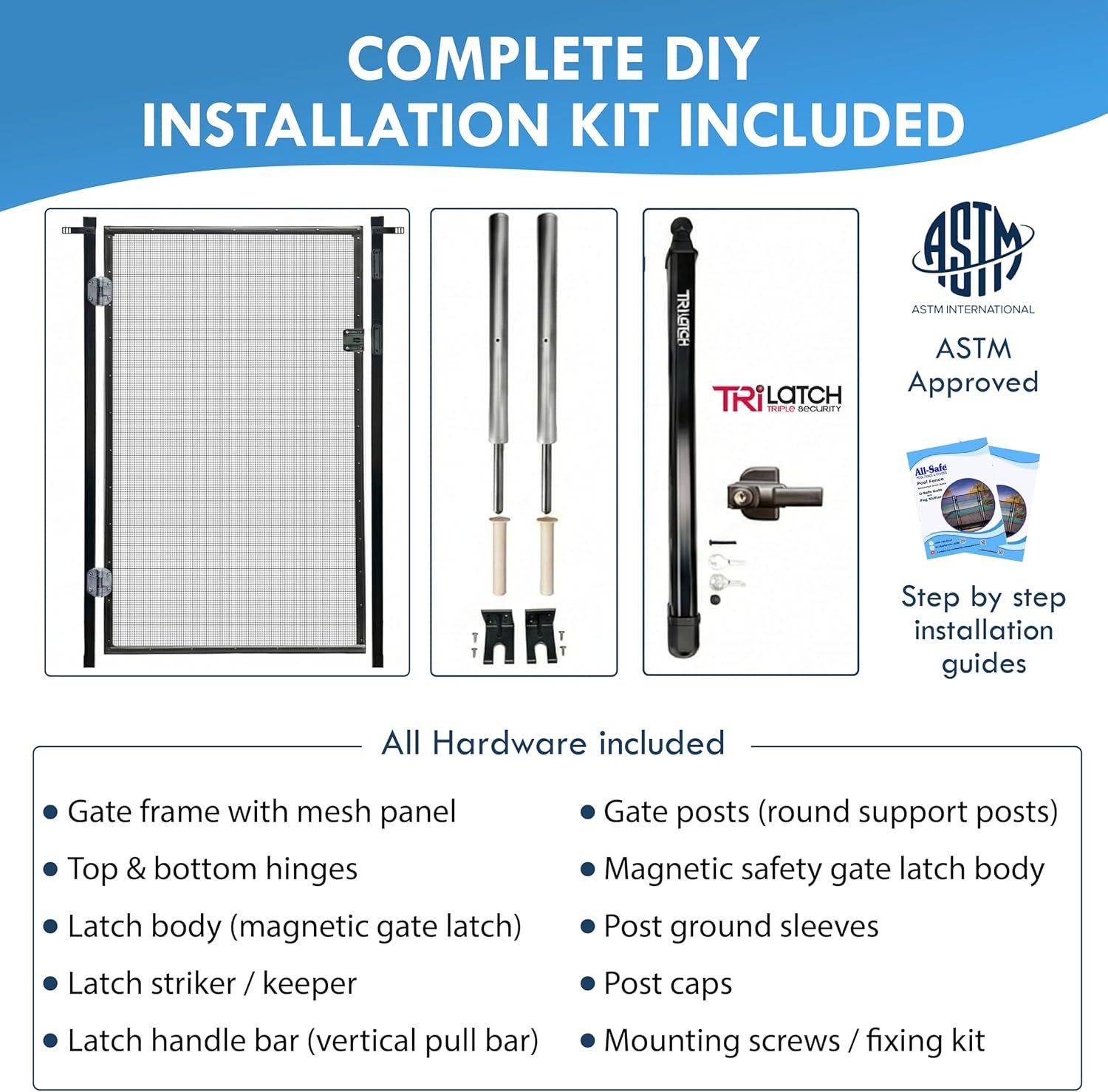 Pool safety is a top priority for homeowners with children, pets, or frequent guests. The All-Safe Pool Fence Self-Closing Gate Kit is specifically designed to enhance pool fence systems by providing a dependable entry point that automatically closes and latches after each use.