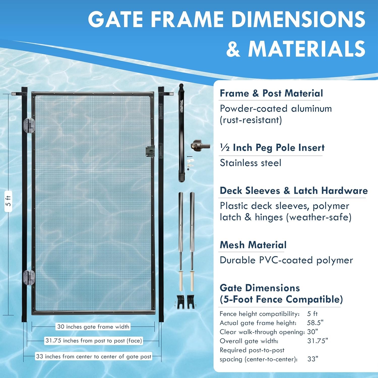 This gate kit is engineered to meet the needs of residential pool owners looking for a secure, durable, and easy-to-install pool gate that integrates with removable mesh fencing systems. The automatic closing mechanism reduces the risk of leaving a pool gate open, helping maintain a safer pool environment.