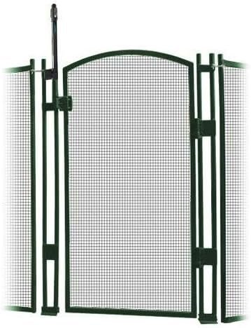 The Sentry Safety pool gate is designed to work with removable mesh pool fencing systems commonly used for backyard pools. It typically mounts to a concrete deck using sleeves and hardware included with the kit.